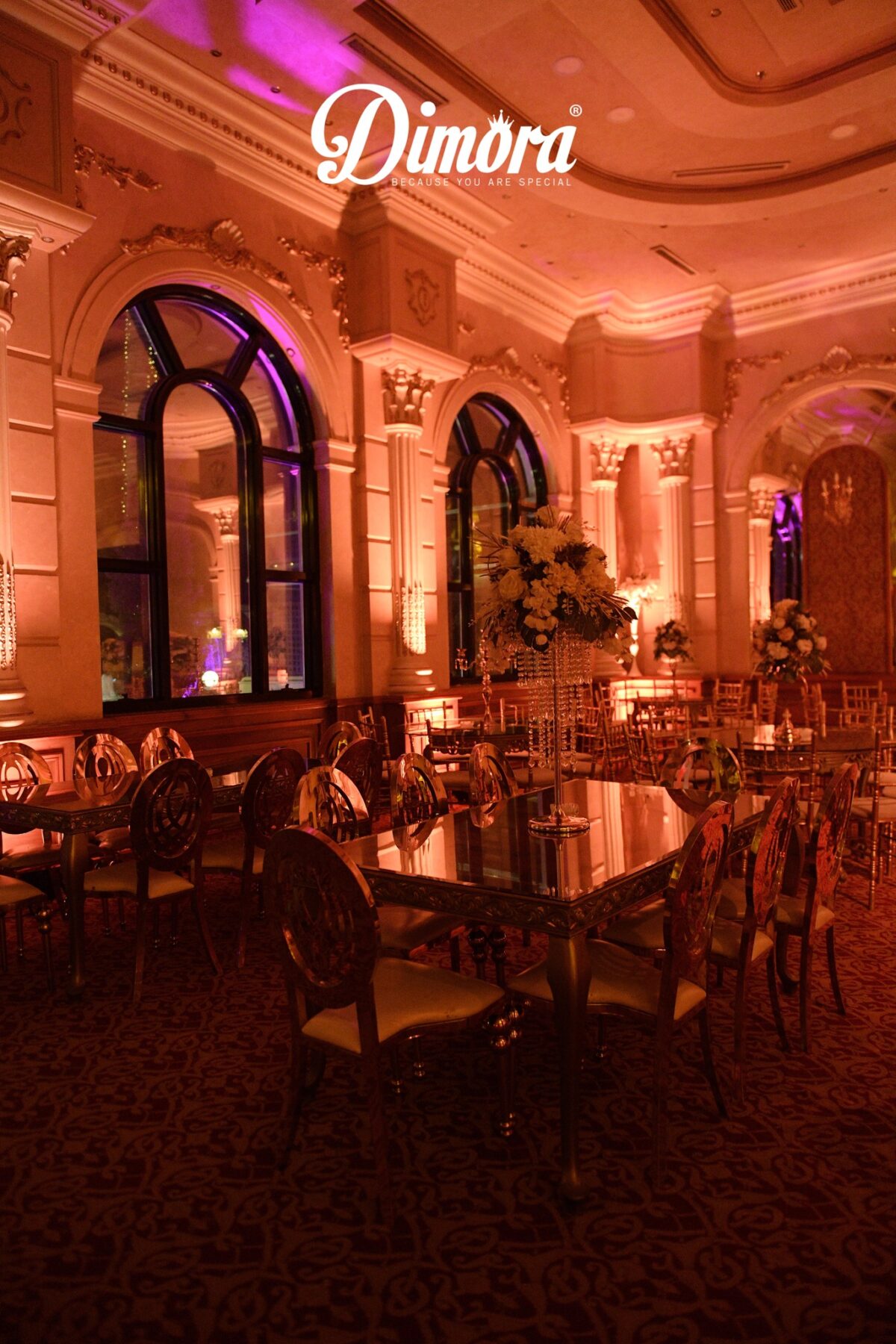المكان كمان مناسب لأي ذوق، سواء عايزين فرح بسيط بألوان هادية، أو ثيم مودرن، أو حاجة رومانسي فيها ورود وإضاءة. Dimora من الأماكن اللي تقبل أي فكرة لأن تصميم القاعة نفسه نضيف وقابل للتشكيل من غير ما يبقى محتاج مجهود كبير.