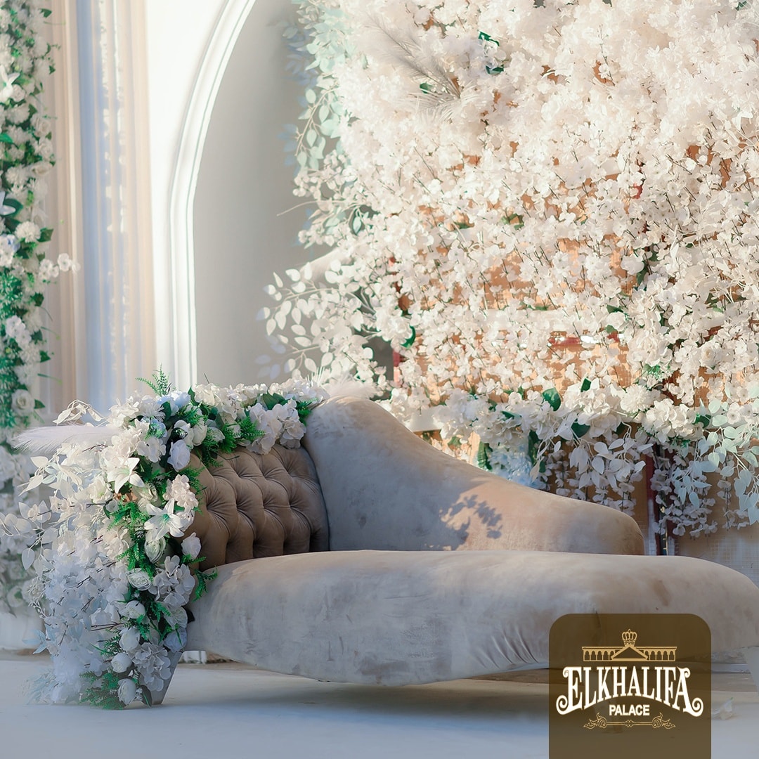 واحدة من أكتر الحاجات اللي بتجذب أي عروسة لـ El Khalifa Palace هي الكوشة. المكان بيتميز بكوشات بتصميمات مختلفة، تقدر تختار منها اللي يناسب ثيم اليوم، سواء ورود، إضاءات، أو ديكور بسيط أنيق. وفريق الديكور هناك بيشتغل مع العروسة خطوة بخطوة علشان يطلع شكل اليوم مظبوط زي ما في خيالها، وده بيخلي كل تفاصيل الفرح طالعة متنسقة ومريحة للعين. الإضاءة كمان من أقوى عناصر المكان، لأنها بتتغير حسب شكل الديكور والمزيكا، وده بيعمل جو يخلّي الحفلة شكلها متحرك طول الوقت.