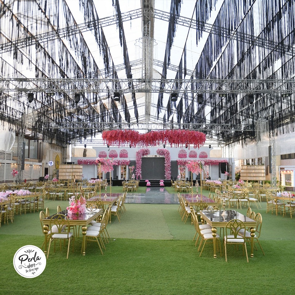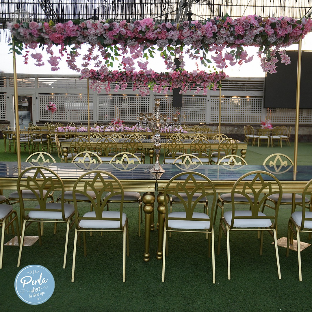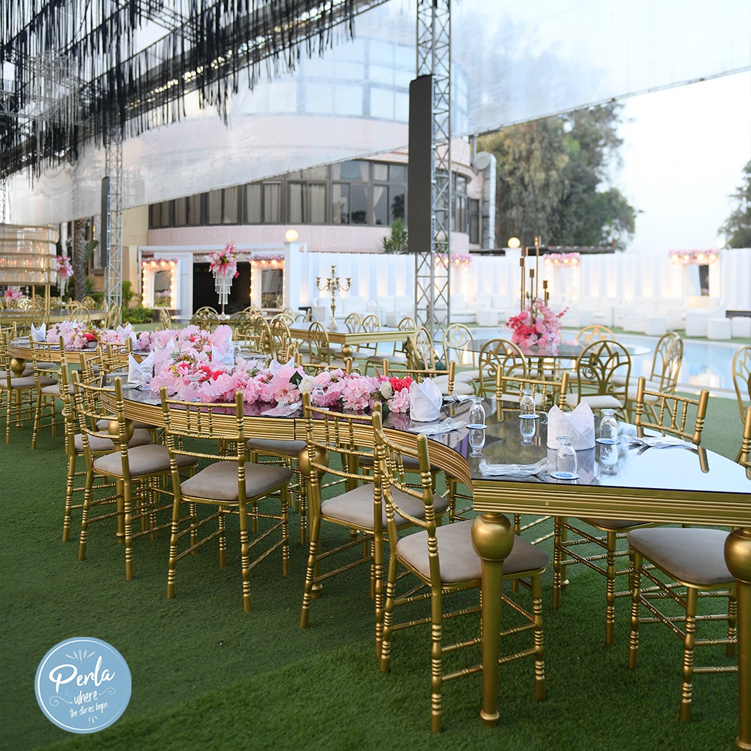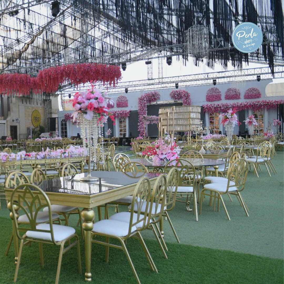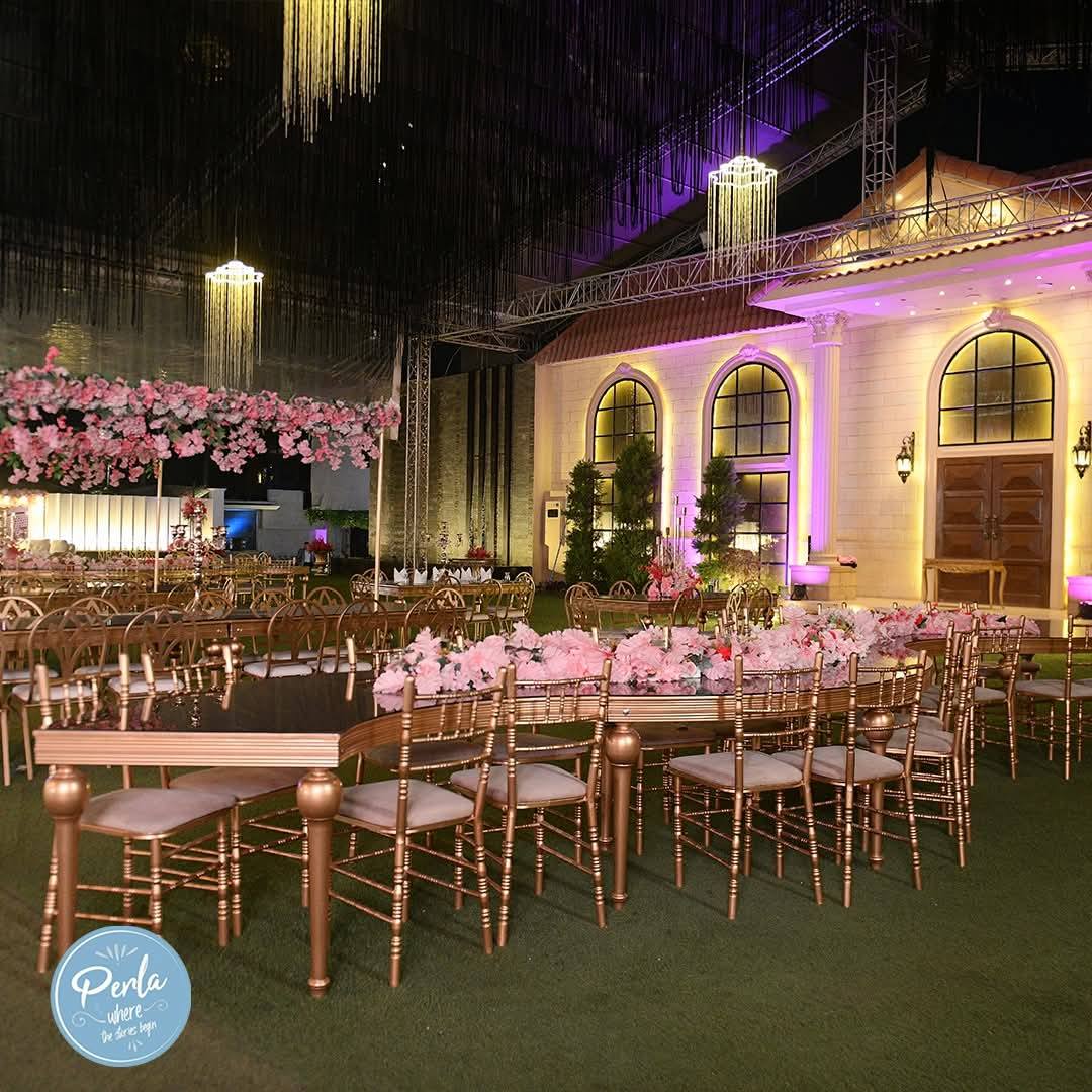 Perla من الأماكن اللي أول ما تدخلها تحس إن فيها لمسة فخامة هادية كده، فخامة من النوع اللي يبان بدون ما يبقى فيها مبالغة. المكان معمول بروح راقية وخفيفة في نفس الوقت، وده بيخلي أي فرح فيه يطلع شكله شيك ومتناغم. Perla بقت من الاختيارات المفضلة عند العرايس اللي بيحبوا الشكل النضيف المرتب، والجو اللي يخلي يومهم هادي ومنظم ومليان تفاصيل بسيطة بس واضحة.