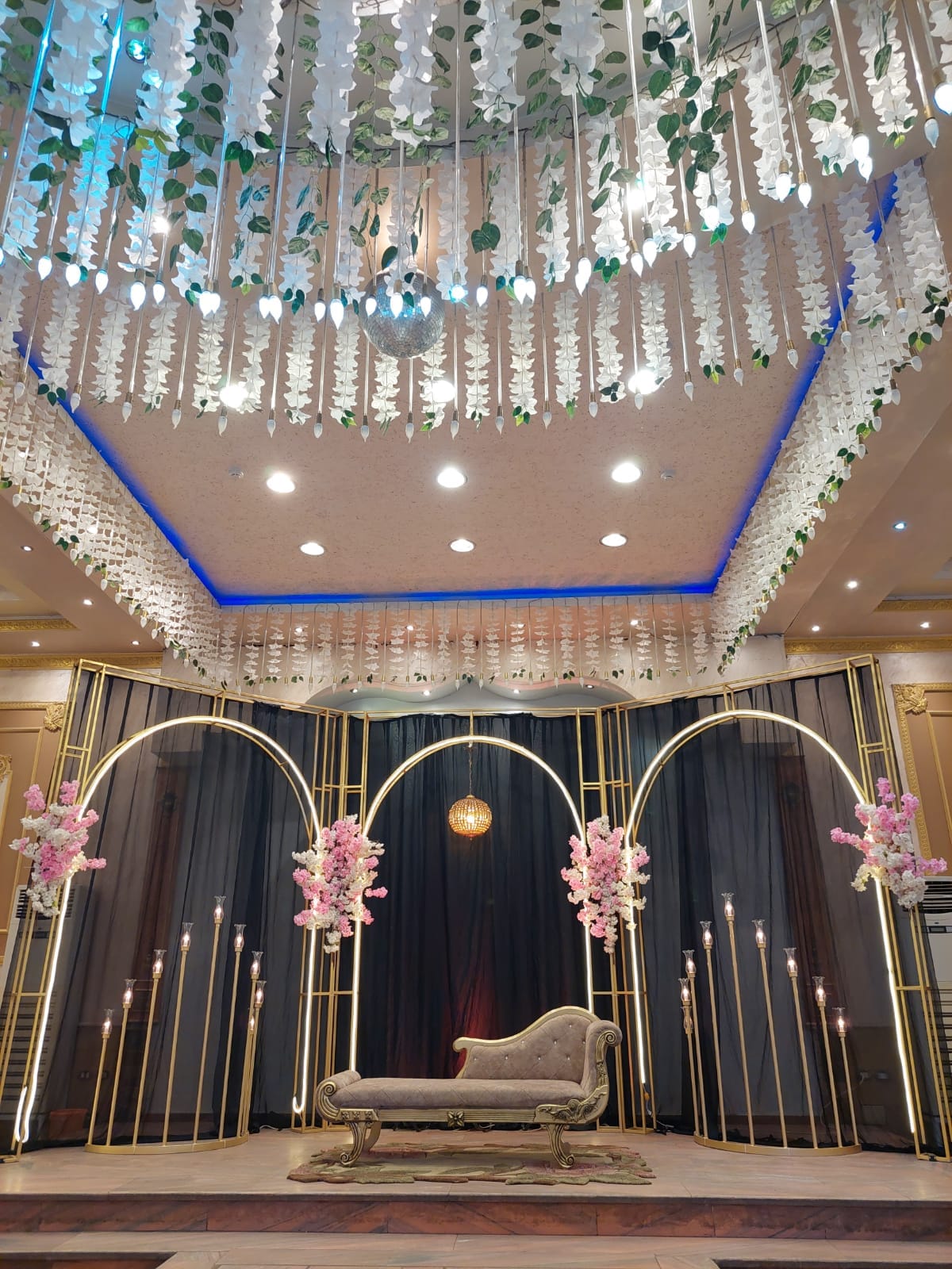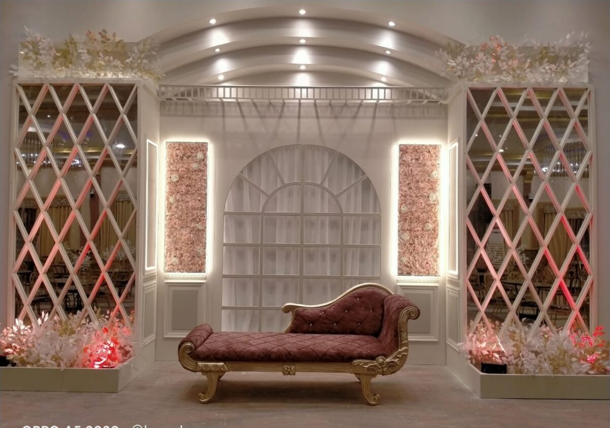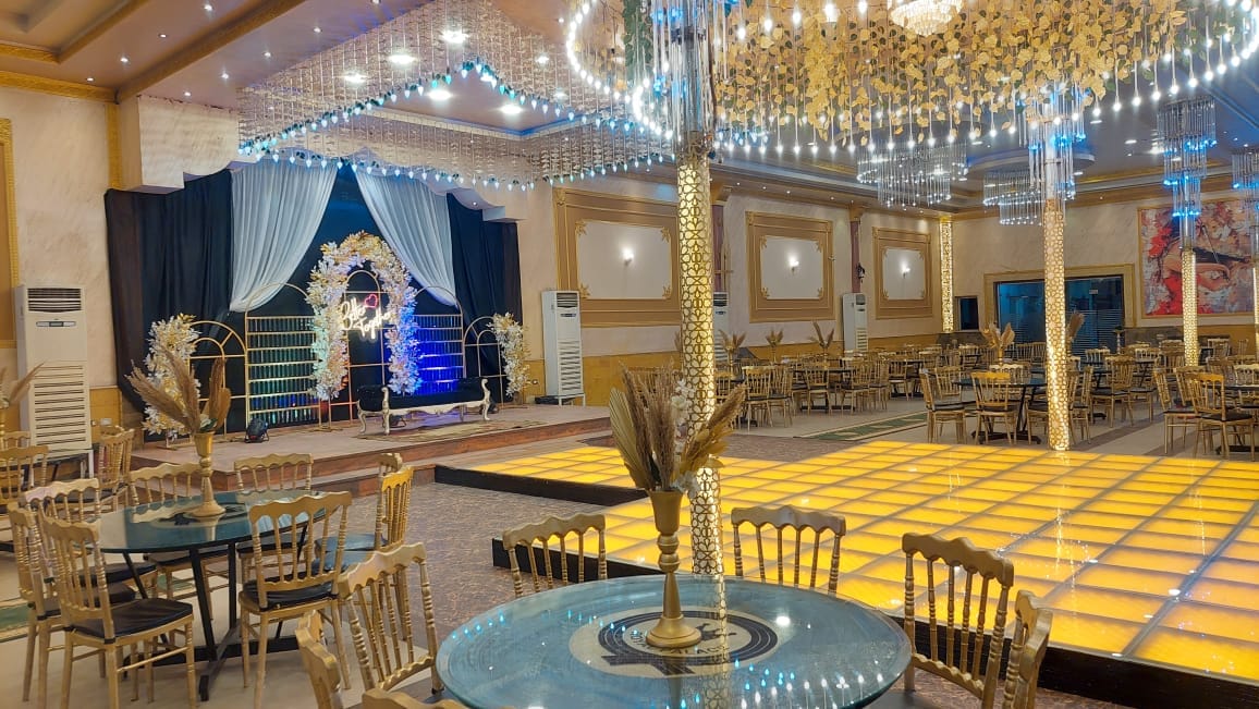 التصميم الداخلي بيجمع بين الرقي والكلاسيكية، مع تفاصيل أنيقة وألوان متناسقة تعكس أجواء الاحتفالات الراقية.