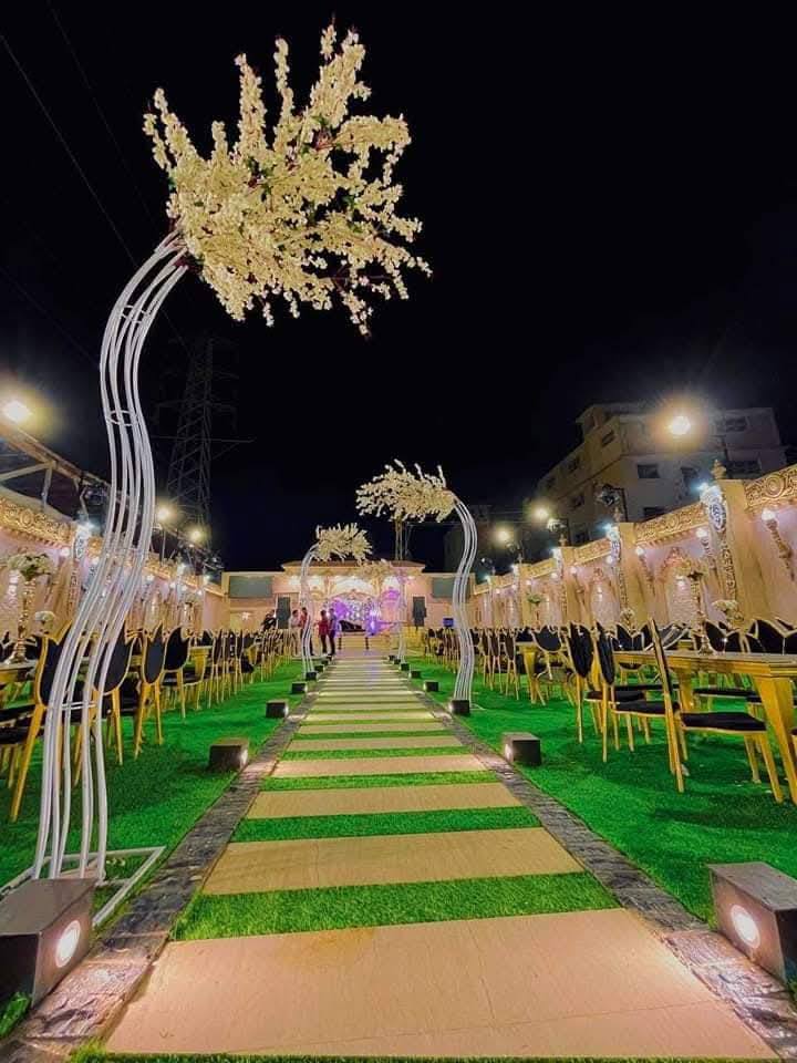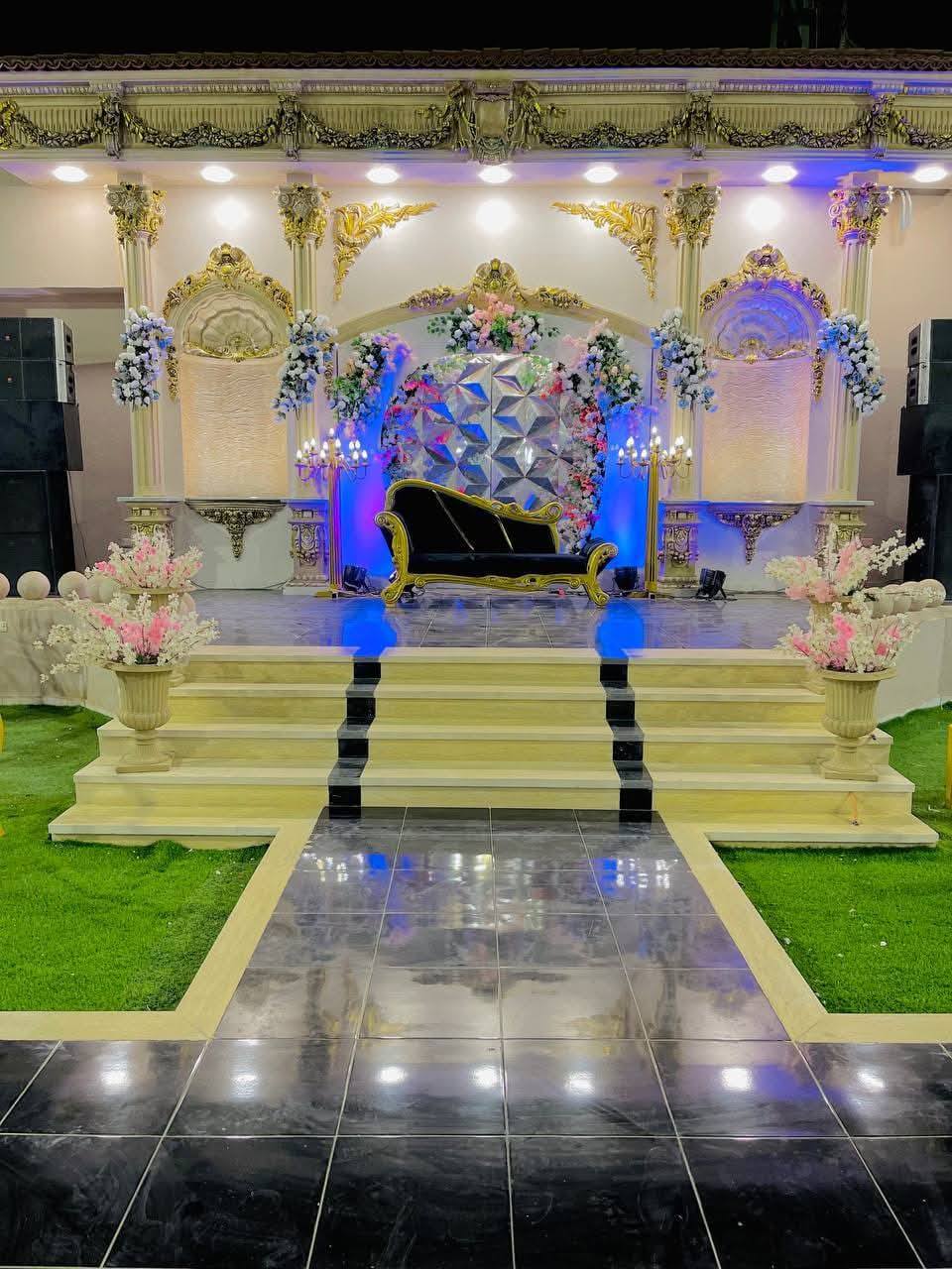 الكوشة في Villa NOOR بتتعمل حسب ذوق العروسة، بس دايمًا بيكون فيها تناغم مع شكل المكان العام. ممكن تكون كوشة بسيطة فيها ورد أبيض وإضاءات هادية، أو تصميم مودرن يعتمد على الوان فاتحة وخطوط نضيفة. المهم إن كل حاجة بتتظبط بشكل يخلي الصورة النهائية للفرح ناعمة ومريحة للعين. وعلشان المكان واسع ومفتوح، أقل تفاصيل ممكن تبان وتدي شكل ألطف من القاعات المغلقة.
