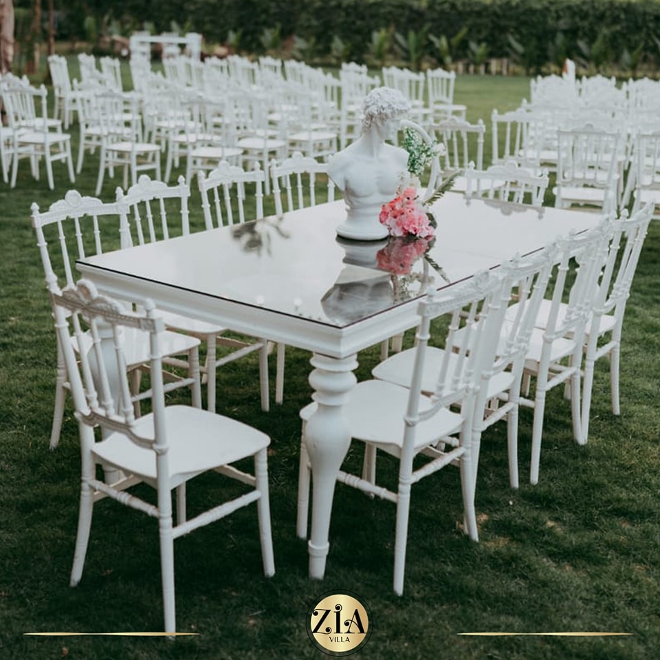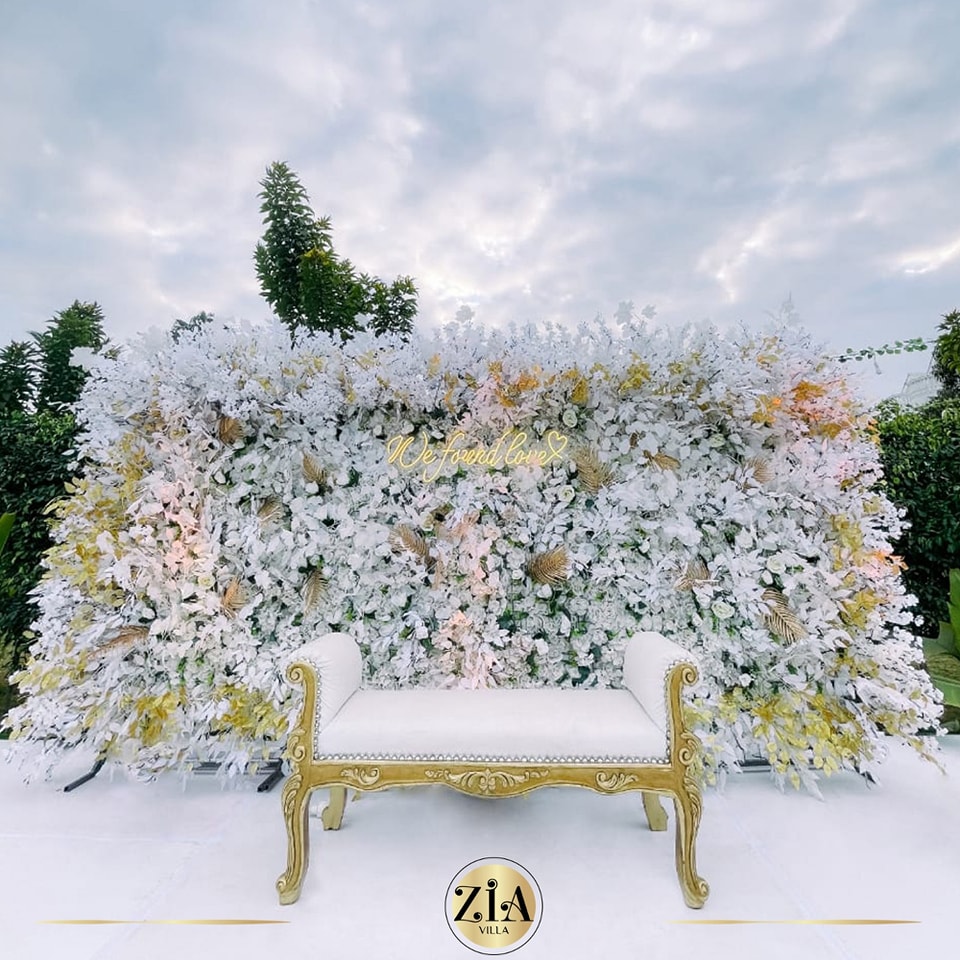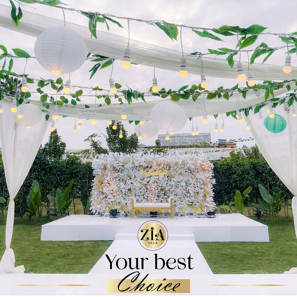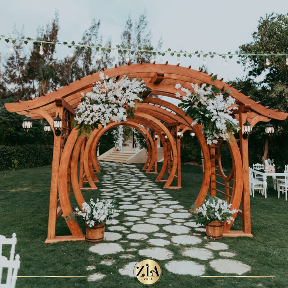 الكوشة في Villa Zia بيكون ليها شكل مختلف حسب ذوق العروسة، لكن غالبًا بتتعمل بتصميم بسيط وراقي. الورود الفاتحة، الإضاءات الدافيه، والخلفيات النعمة كلها عناصر بتبان جميلة جدًا على طبيعة المكان. أقل تفاصيل بتبان وتدي الشكل النهائي جمال ناعم ومريح للعين. الفيلا نفسها ليها طابع مودرن بسيط، وده بيخلي أي ديكور يتركب جواها يطلع متناسق من غير أي مبالغة.