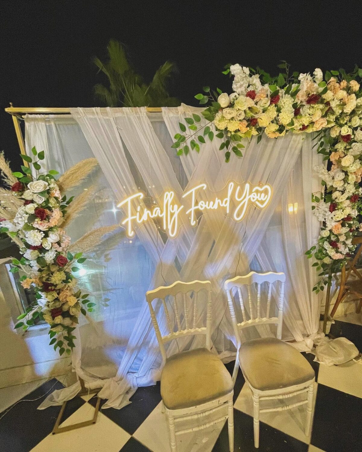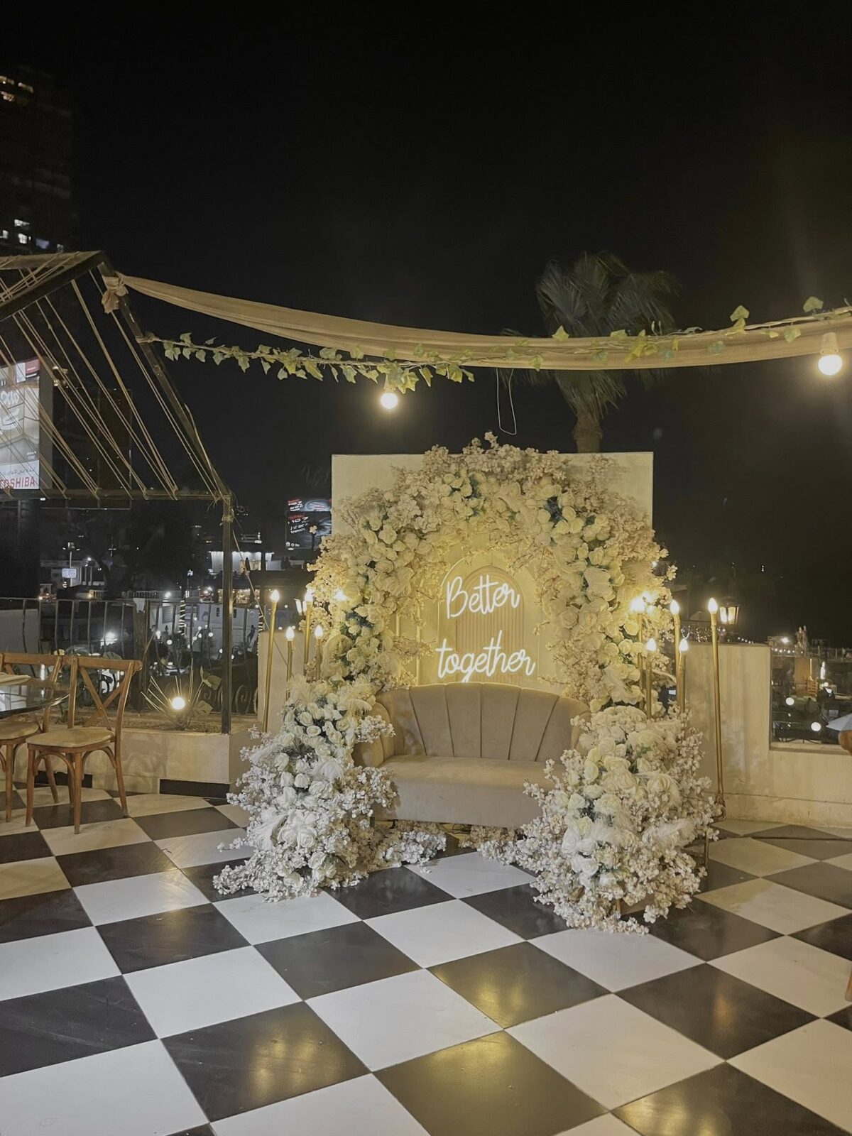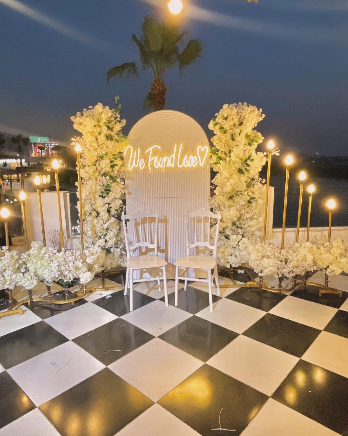 المكان يناسب أي فكرة أو ثيم، سواء مودرن بسيط، ورد، ألوان فاتحة، أو حتى ستايل كلاسيكي. تصميم القاعة مرن ورايق، وده يخلي أي ديكور يطلع شكله جميل ومتناسق من غير مجهود كبير.