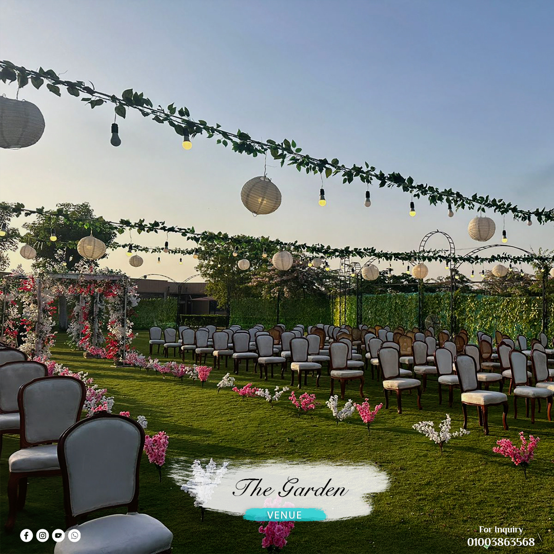 The Garden Venue من الأماكن اللي أول ما تدخلها تحس إنك في قلب مساحة طبيعية حقيقية، مكان كله خضرة وهواء مفتوح وهدوء يريح الأعصاب. المكان معمول علشان يكون تجربة مختلفة عن القاعات التقليدية، لأنه بيعتمد على الطبيعة كعامل أساسي في شكل الفرح. العروسة والعريس اللي بيحبوا فكرة الاحتفال في مكان مفتوح ومليان حياة هيلقوا إن The Garden Venue مناسب جدًا لهم.