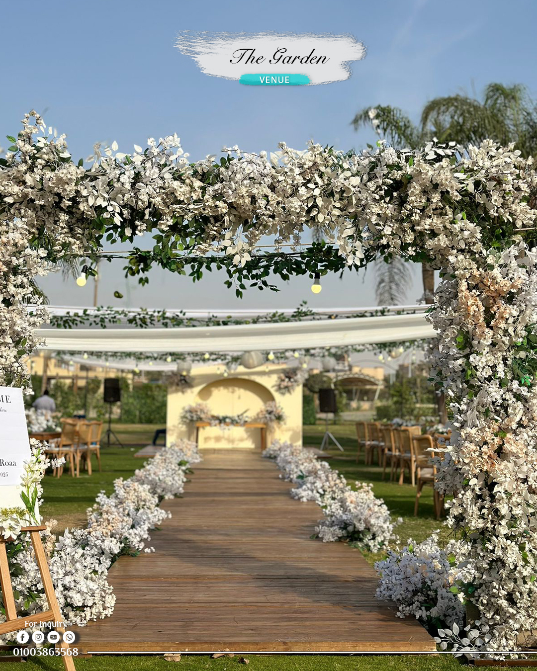 وفي النهاية، The Garden Venue من الأماكن اللي تقدم تجربة فرح مختلفة، فيها راحة وشياكة ومساحات مفتوحة تخلي اليوم كله طبيعي ومبهج. الصور تطلع رائعة، الضيوف يستمتعوا، والعروسة والعريس يعيشوا يوم كله طاقة حلوة وذكريات تفضل عايشة طول العمر.