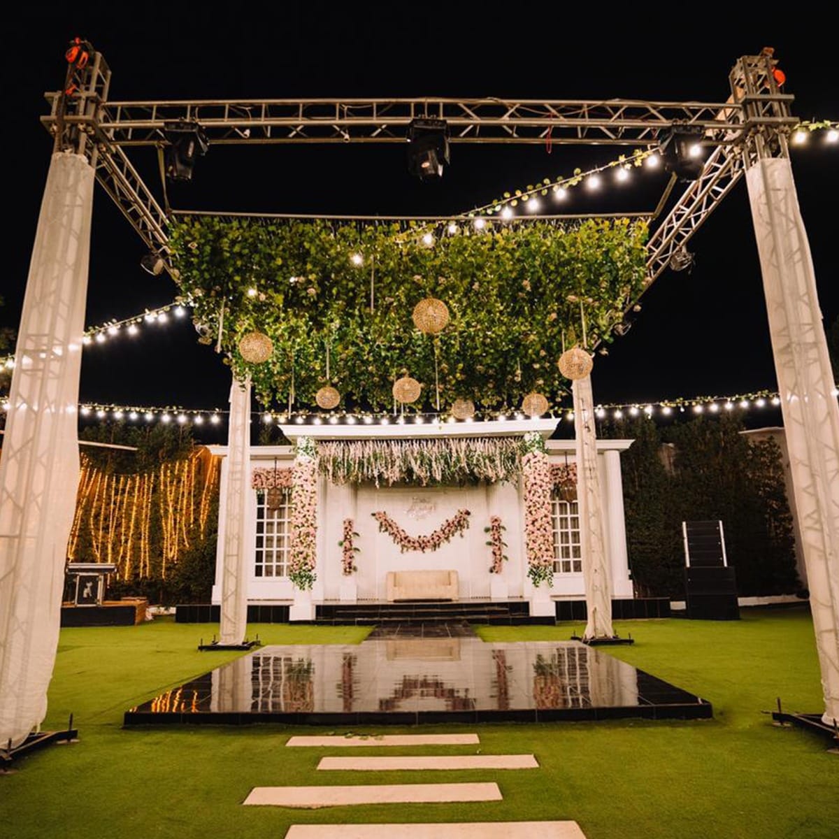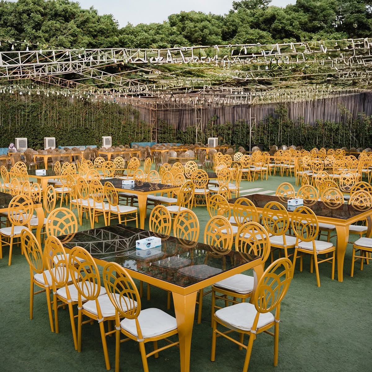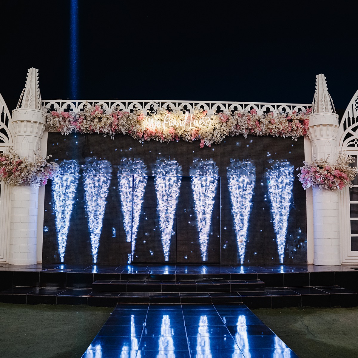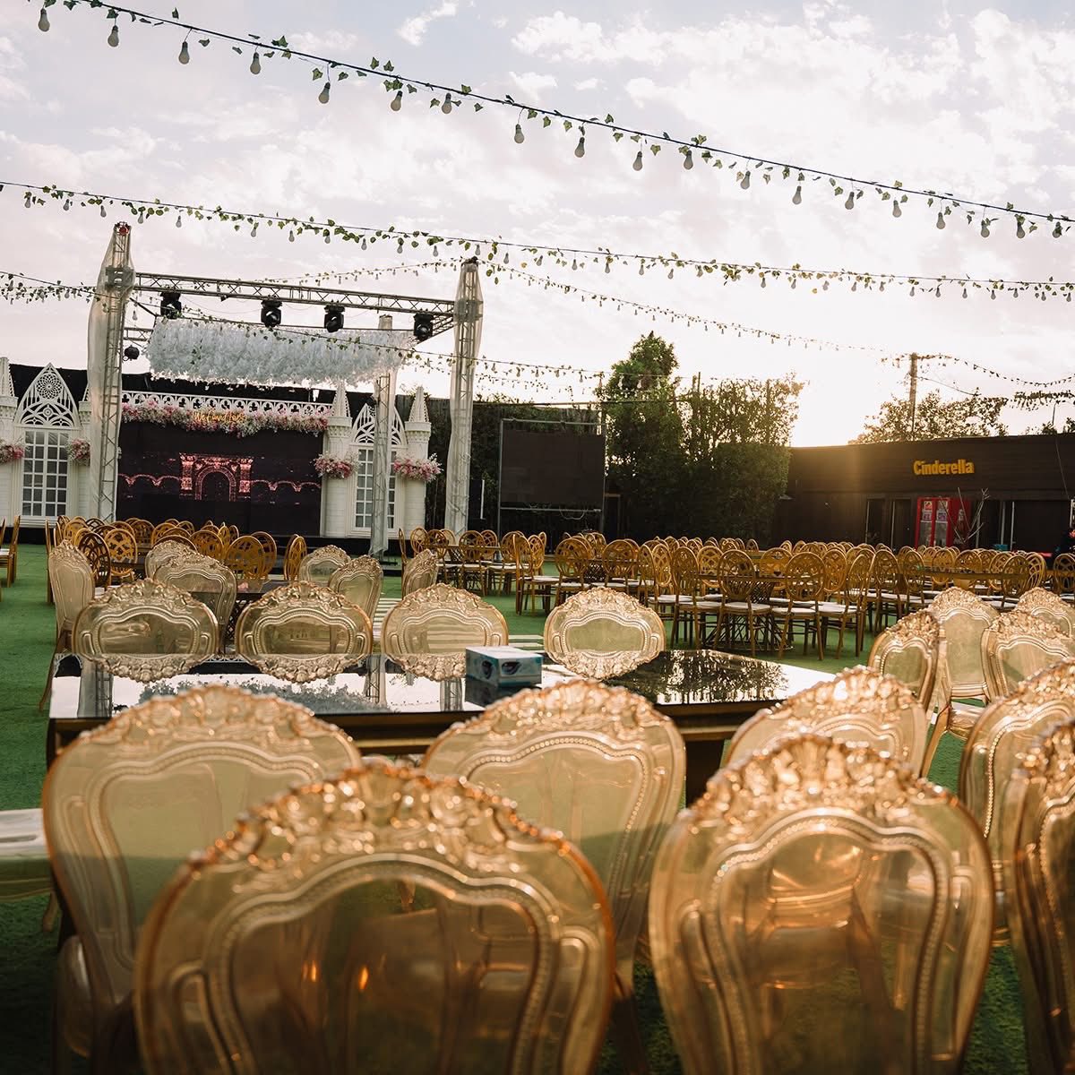 قاعة سندريلا بتستقبل عدد كويس من الضيوف، وده بيخليها مناسبة لكتب الكتاب، حفلات الخطوبة، أو الأفراح اللي عددها متوسط. المكان متقسم بشكل واضح، فيه منطقة مخصصة للكوشة، الطاولات مترتبة بشكل مريح، وفيه ممر واسع للزفة.
