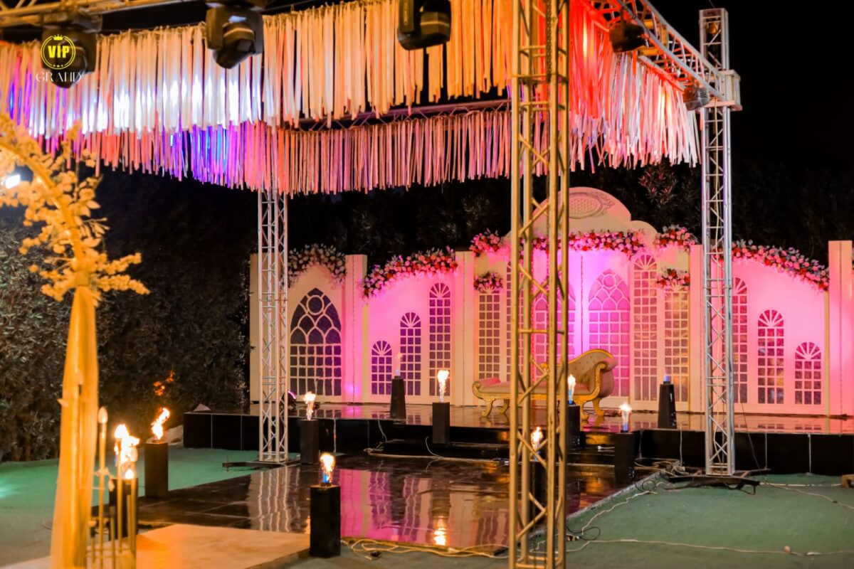 الإضاءة موزعة كويس، والألوان بتدي إحساس بالهدوء، وده مناسب لأي حفلة بتحب تركز فيها على التفاصيل الصغيرة.