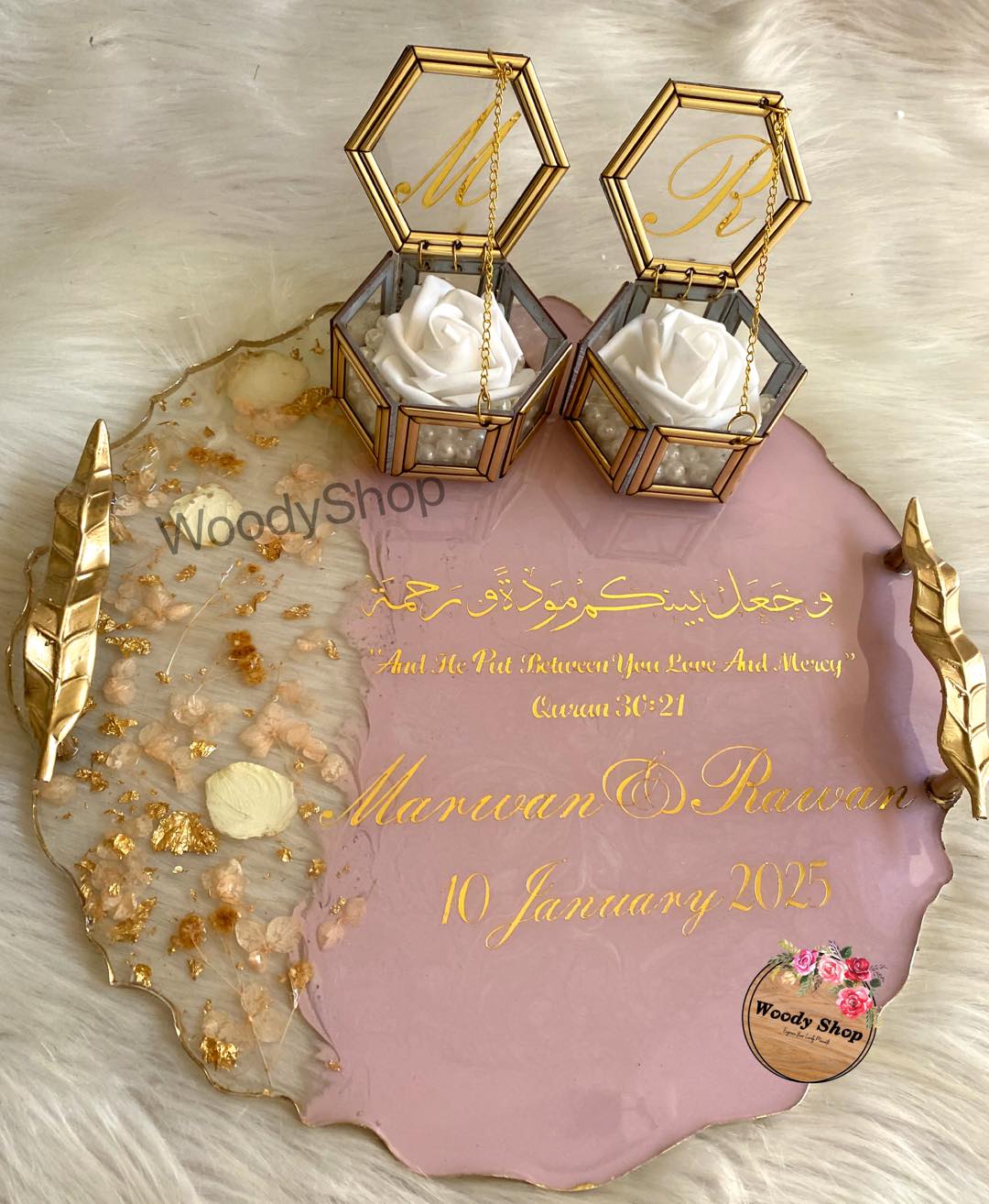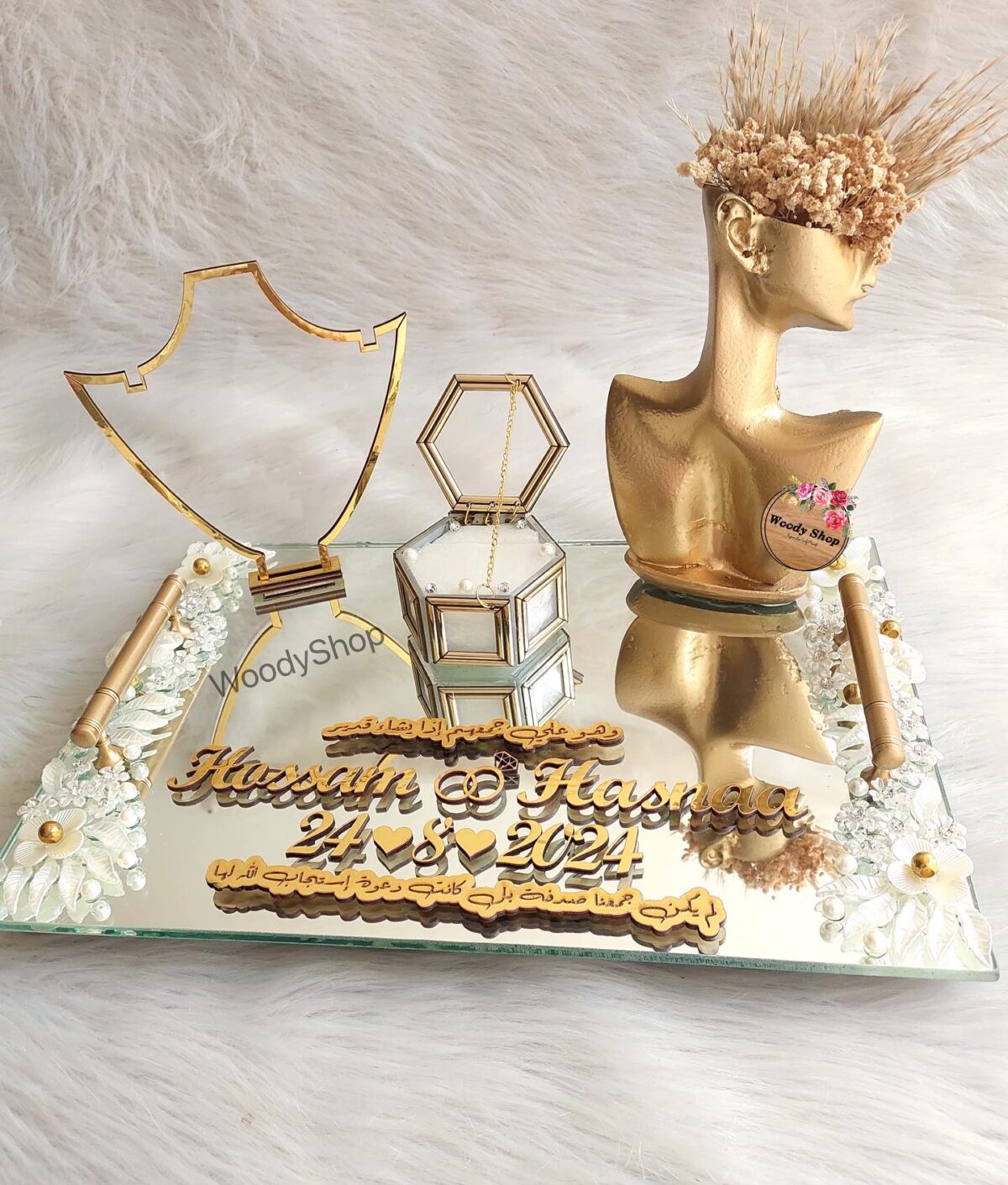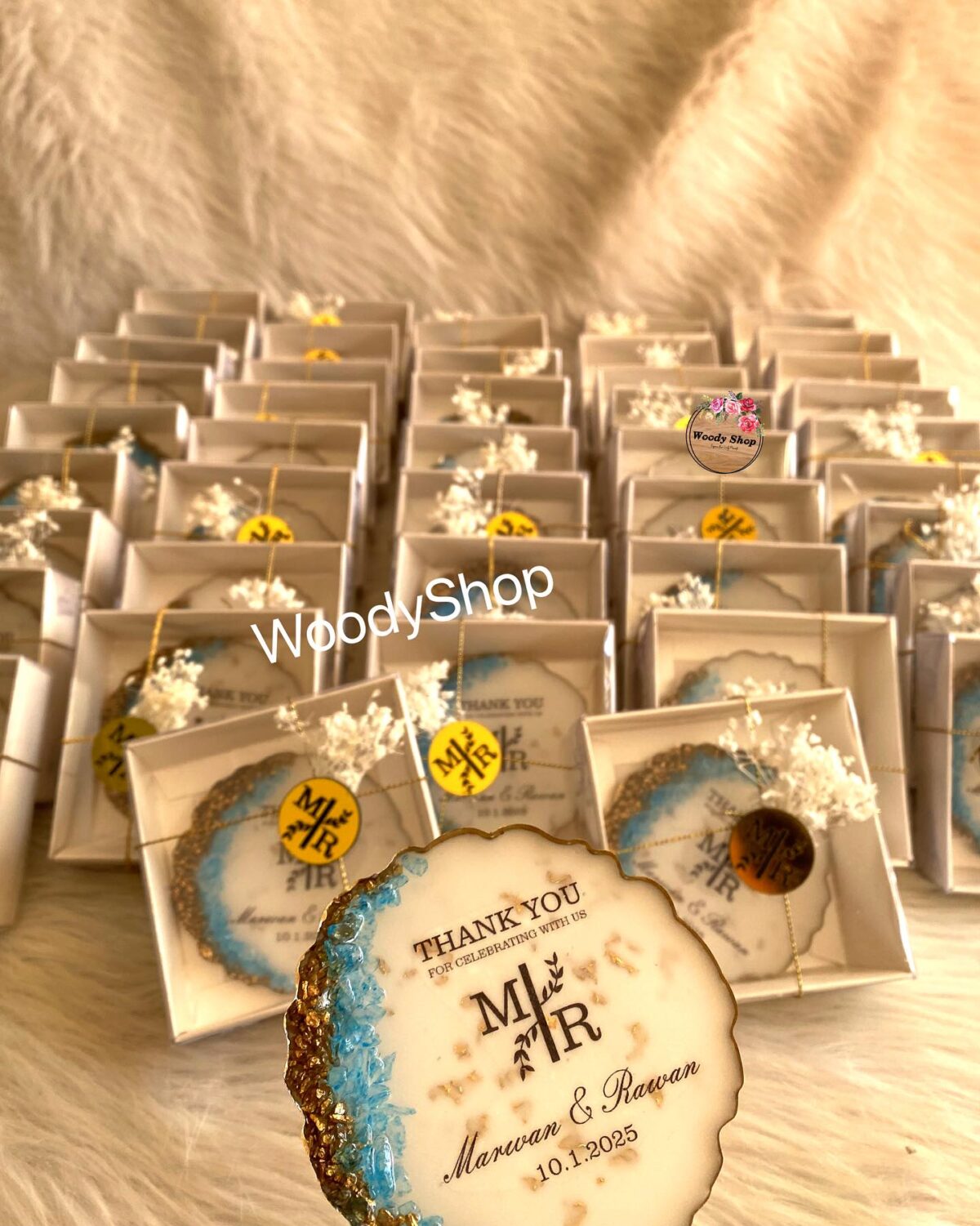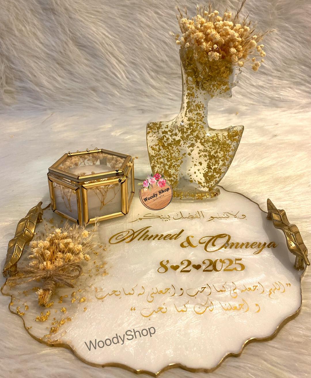 • وشاحات وصناديق هدايا محفورة لأصحاب العروسة.