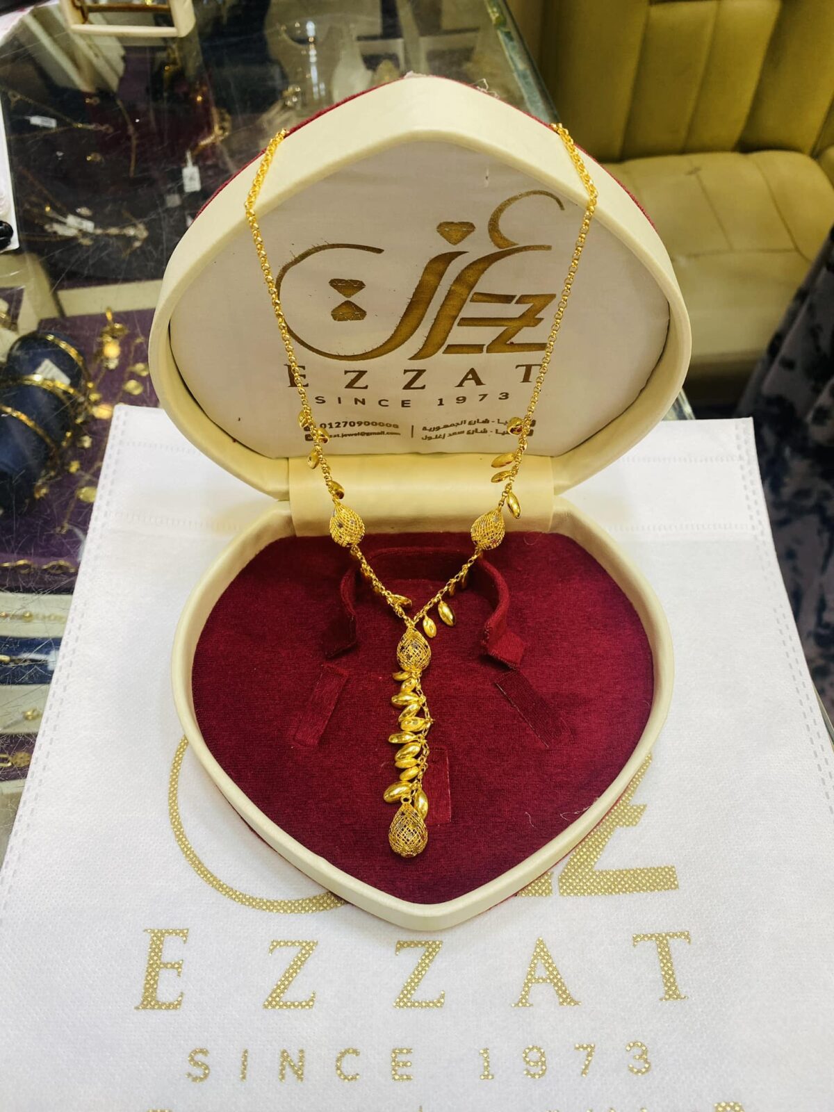 مجوهرات عزت من المحلات اللي ليها حضور قوي وسط أماكن الدهب، وناس كتير بتروح له وهي بتجهّز للجواز لأنها بتدور على شبكة أو دبل يكون شكلها شيك، وزنها مناسب، وشغلها متقن يعيش سنين طويلة. أول ما تدخل المكان بتحس إن العرض منظم وراقي، كل قطعة باينة بتفاصيلها، والإضاءة مبيّنة جمال الشغل، وده بيسهّل جدًا على العريس والعروسة يشوفوا الموديلات بعين مرتاحة ويختاروا اللي يناسب ذوقهم.