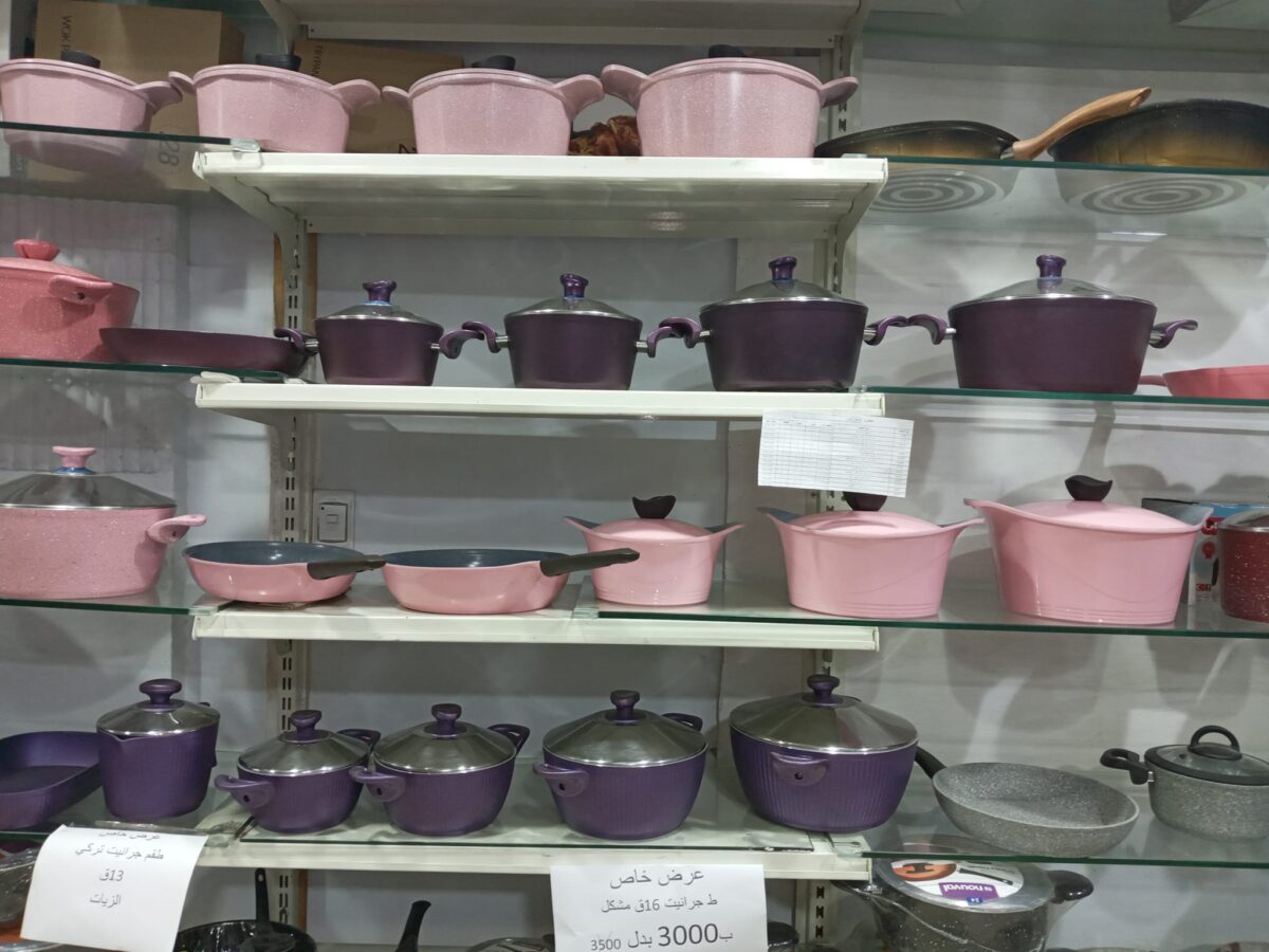 أما في قسم السفرة والتقديم، فالمكان بيعرض أطقم أطباق بورسلين وزجاج بألوان وتصميمات متنوعة تناسب كل الأذواق، سواء بتحبي الشكل البسيط أو النقوش الكلاسيك. كمان فيه كاسات عصير، فناجين شاي وقهوة، صواني تقديم، وأباريق عملية تكمل شكل السفرة وتخلي الضيافة جاهزة في أي وقت.