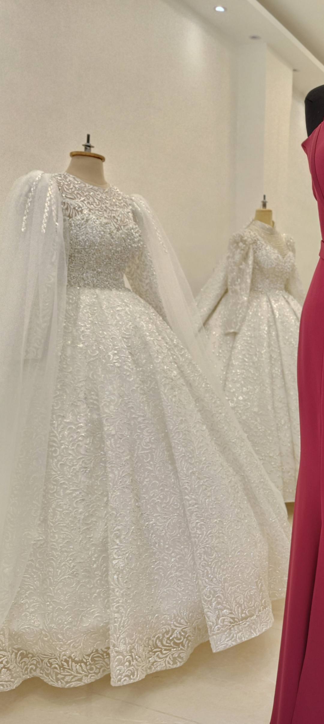 كمان العروسة بتلاقي في اتيليه الريان كل الحاجات المكملة للفستان زي الجيبون والطرحة وربما كاب بسيط لو محتاجة شكل معين. وده بيسهّل على العروسة إنها تكمّل اللوك بالكامل من مكان واحد.