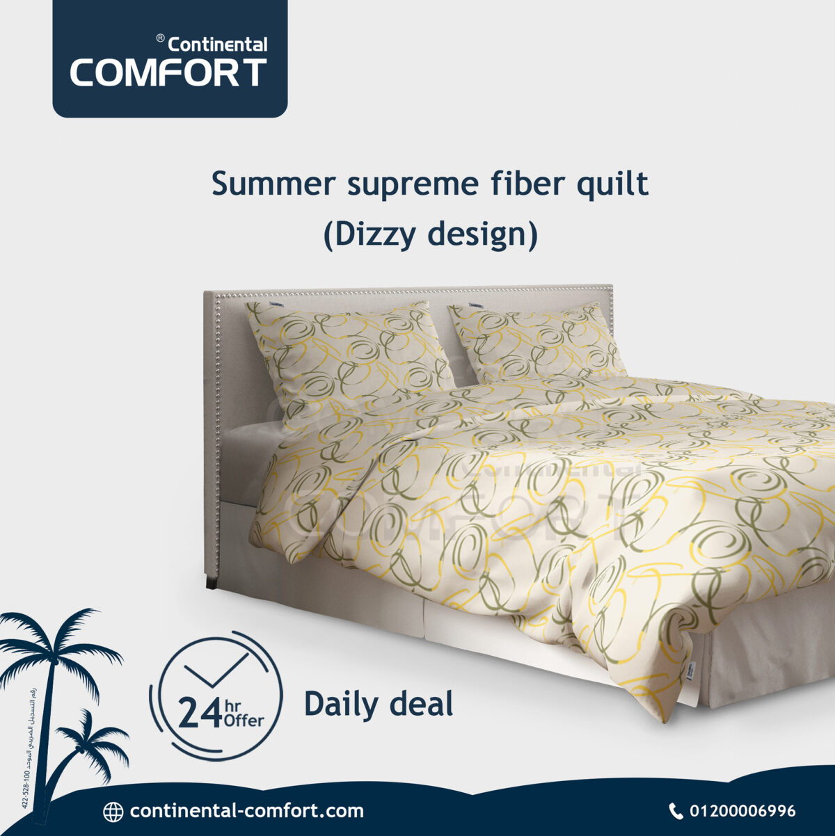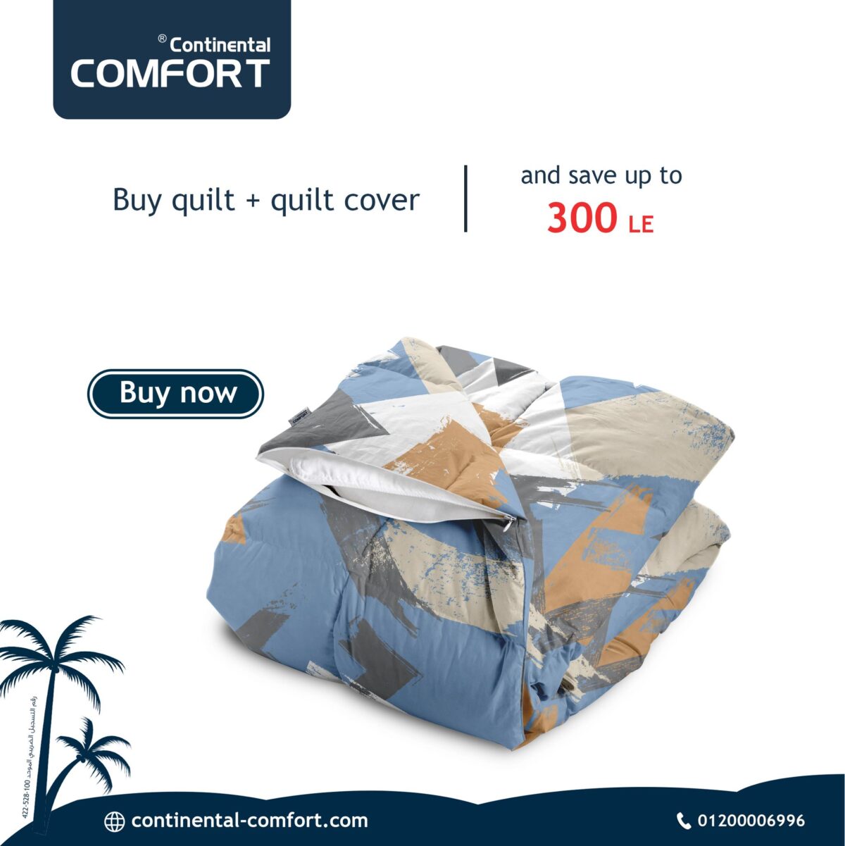 غطاء اللحاف بيتقفل بزر خشب محفور بشعار Comfort Home Collection، متخيط بخيط بوليستر مزدوج يمنع فك الغرزة بعد غسلات كتيرة. الحشو نفسه فايبر سيليكون خفيف موزع فى مربعات خياطة تمنع التكتل، فتحصل على دفا موزع بالتساوى من غير مناطق تقيلة وأخرى خفيفة. وجه اللحاف قطيفة مطفيه والوجه التانى قطن مطبوع، فممكن تقلب اللحاف وتغير شكل الأوضة بسهولة.