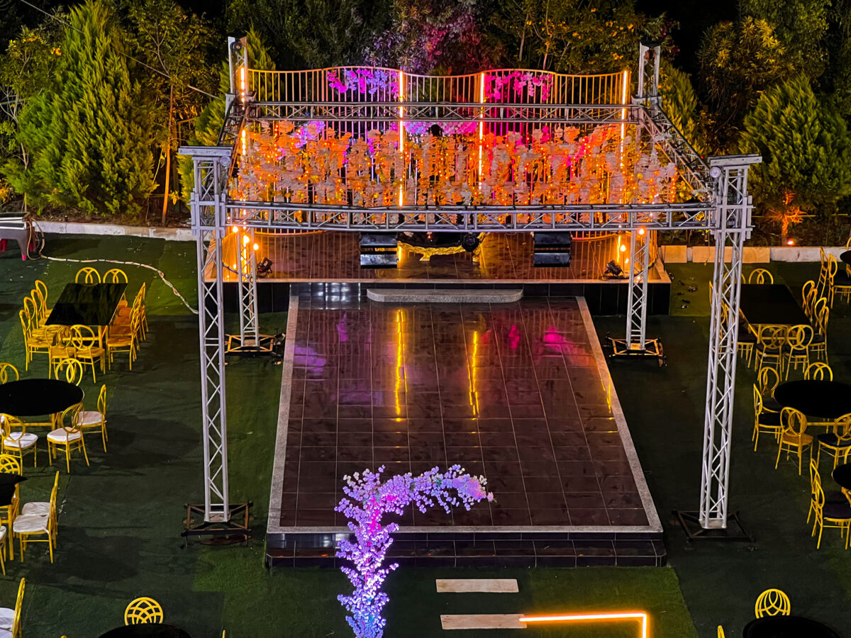 مكان العروسين بيكون دايمًا محور الاهتمام في الفرح، علشان كده تجهيز المنصة بيبقى عنصر مهم جدًا. المنصة لما تكون واضحة والمساحة اللي حواليها محسوبة صح بتخلّي دخول العروسين والفقرات الأساسية تمشي بسلاسة ومن غير لخبطة. التفاصيل البسيطة في الجزء ده بتفرق في الإحساس العام وبتخلّي اللحظات المهمة تطلع منظمة وطبيعية.